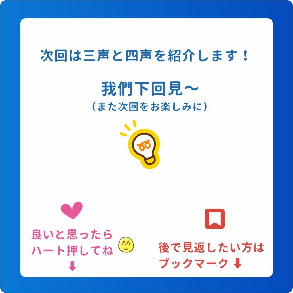 次回は三声・四声を紹介します!どうぞお楽しみに!