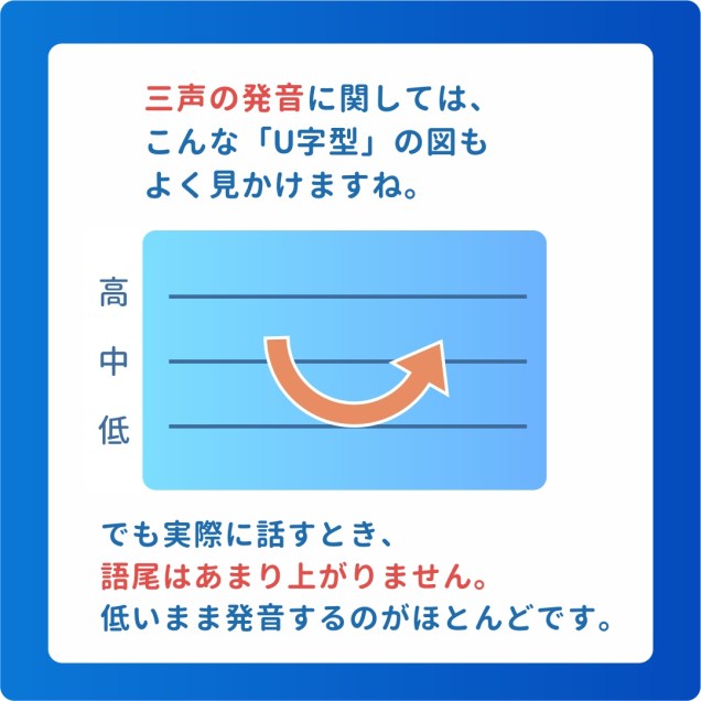 三声の発音に関しては、上のような「U字型」の図もよく見かけますね。