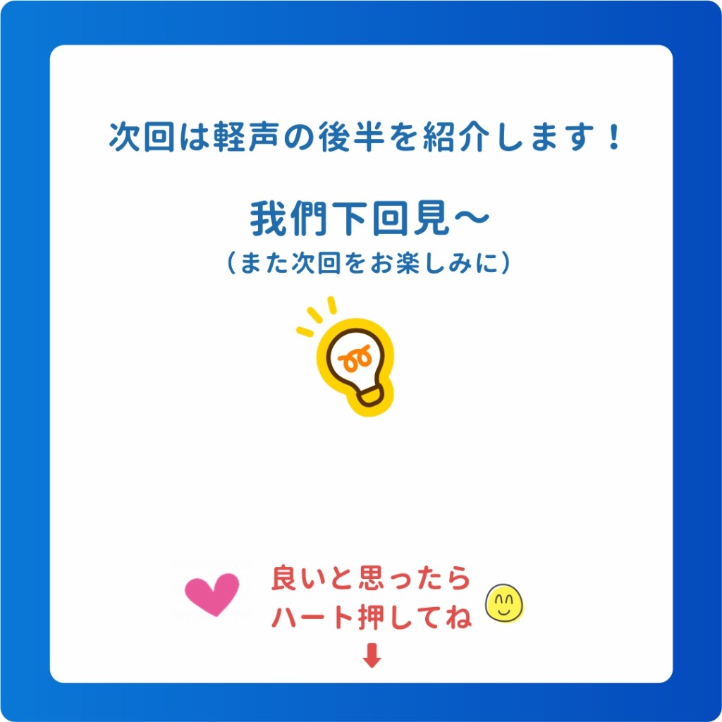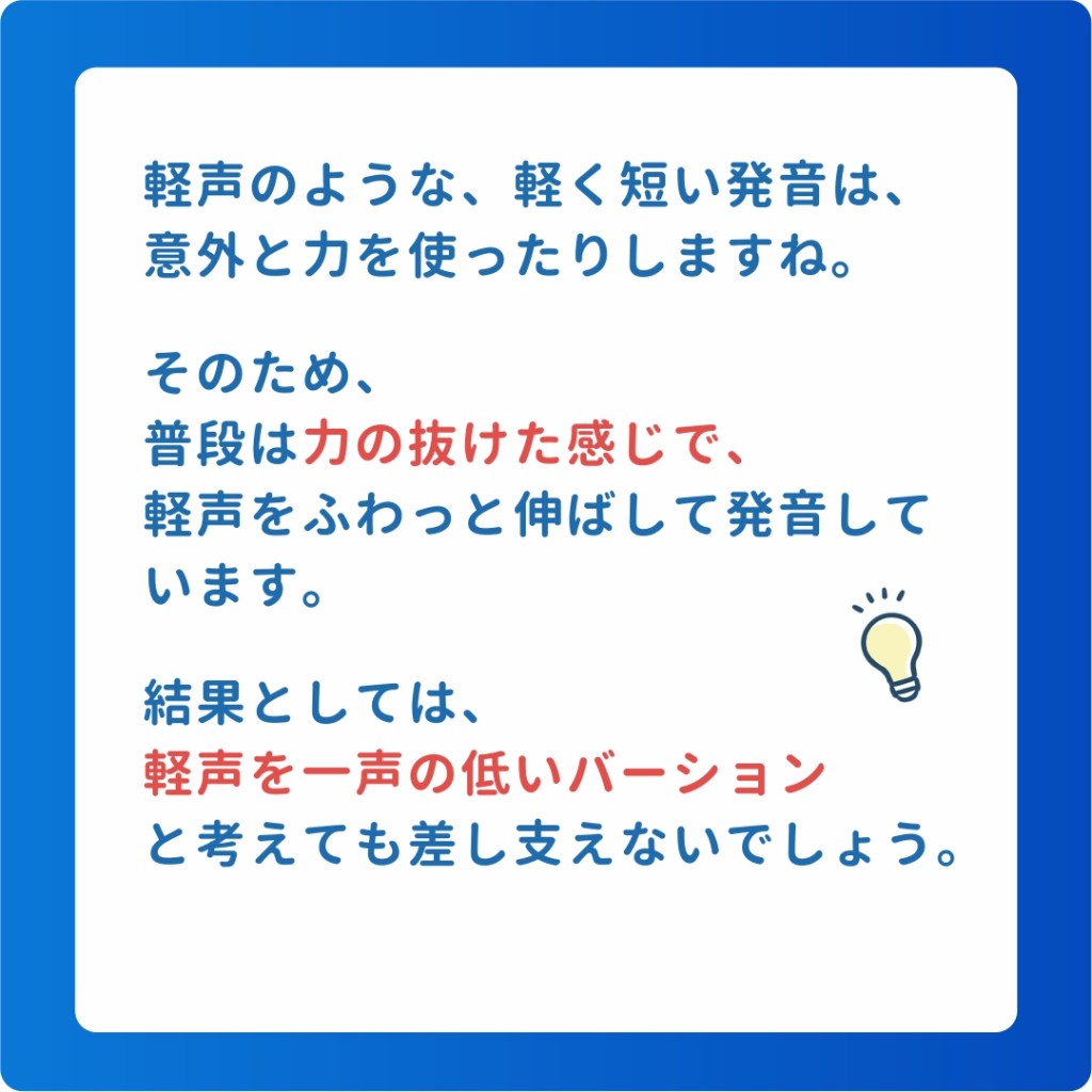軽声のような、軽く短い発音は、意外と力を使ったりしますね。