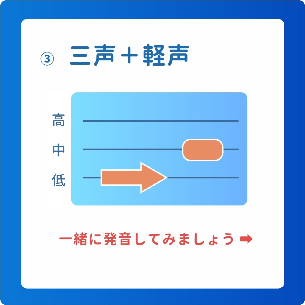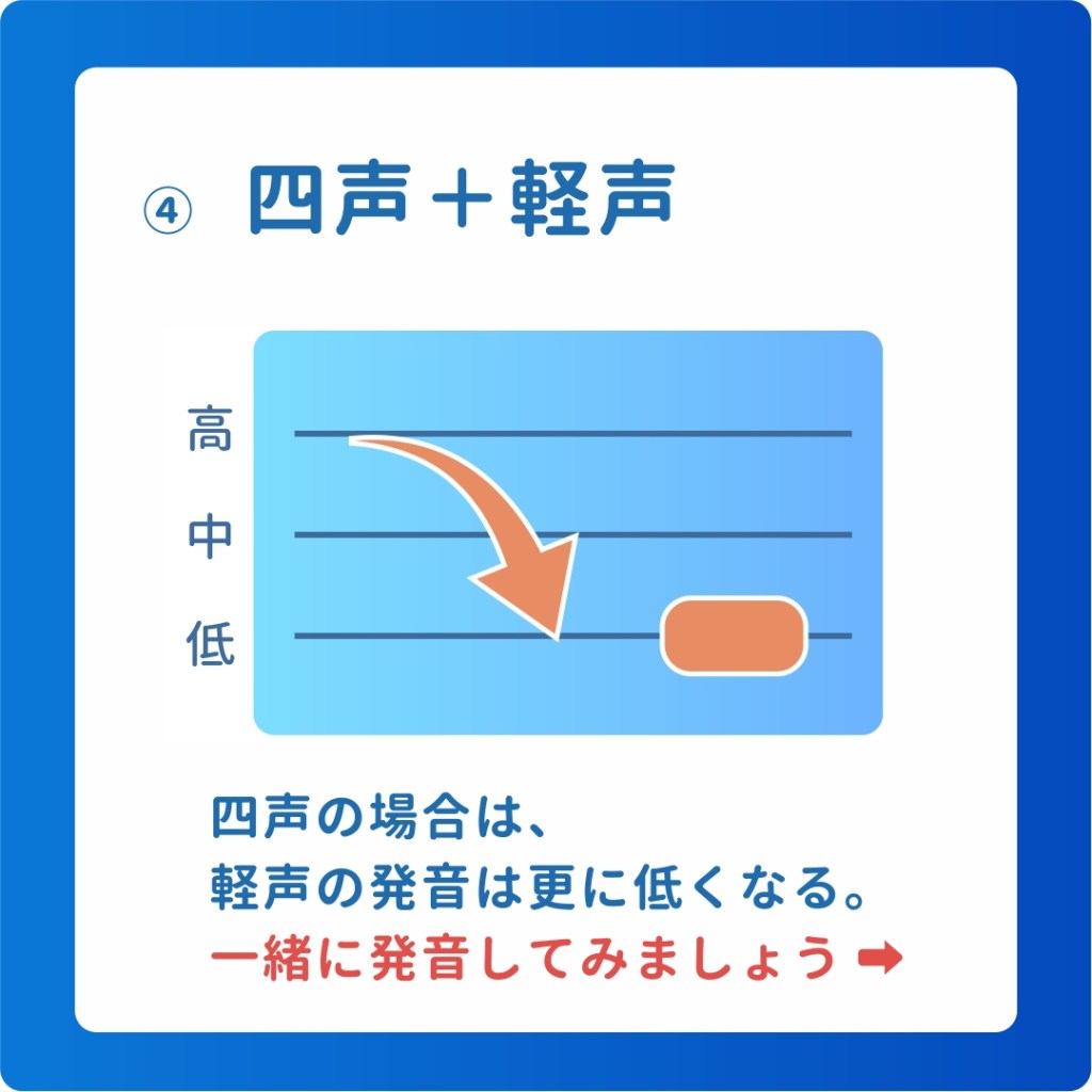 四声の場合は、軽声の発音は更に低くなる。注意してくださいね。