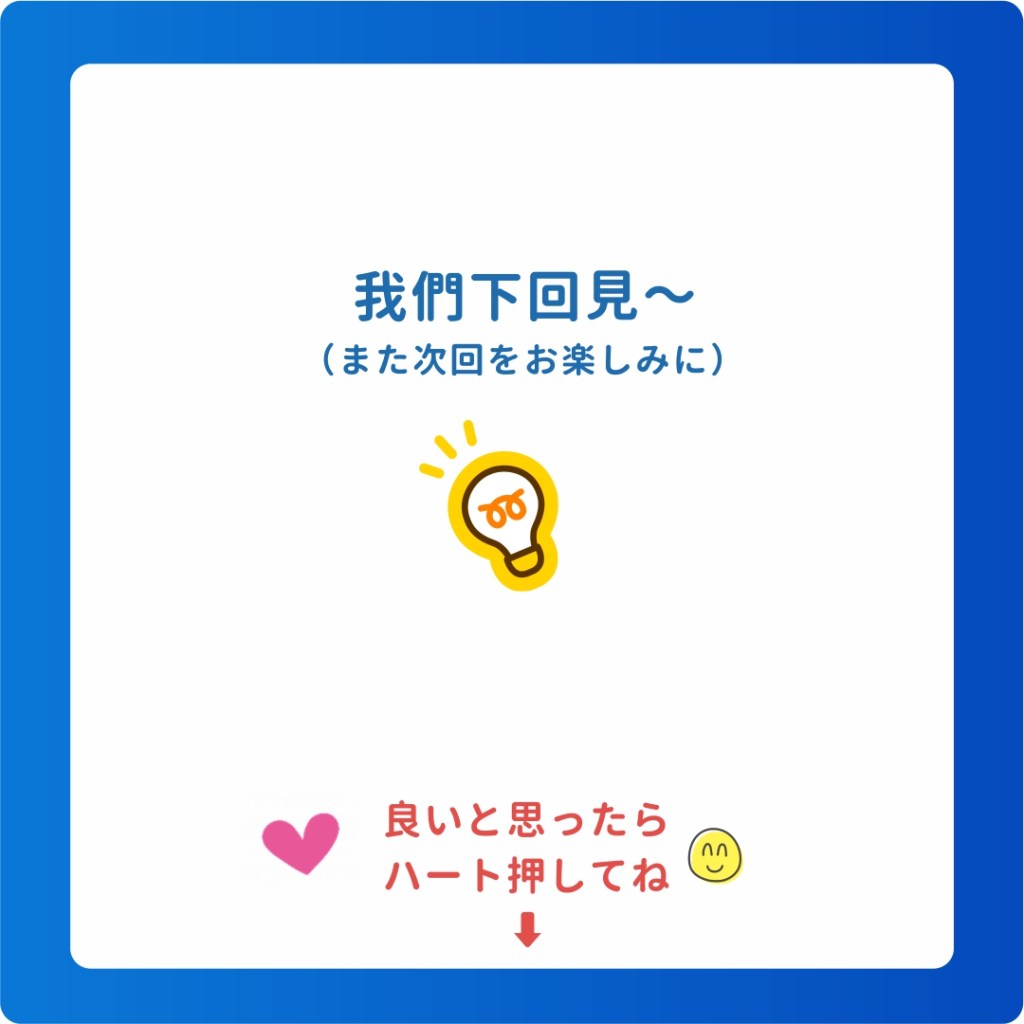 では、また次回をお楽しみに!我們下回見~