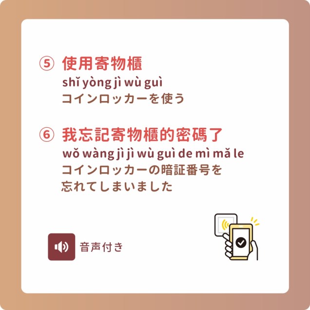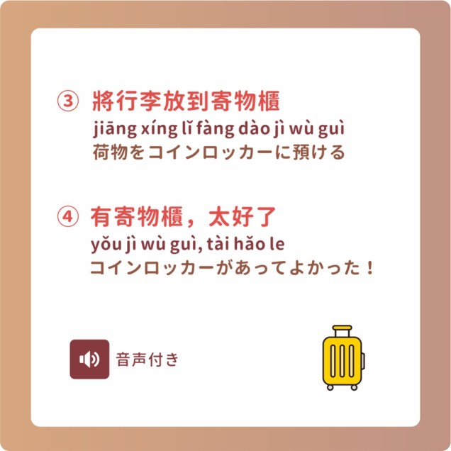 コインロッカーに関する旅行会話をいくつか紹介しましょう。