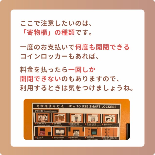 一度のお支払いで何度も開閉できるコインロッカーもあれば、