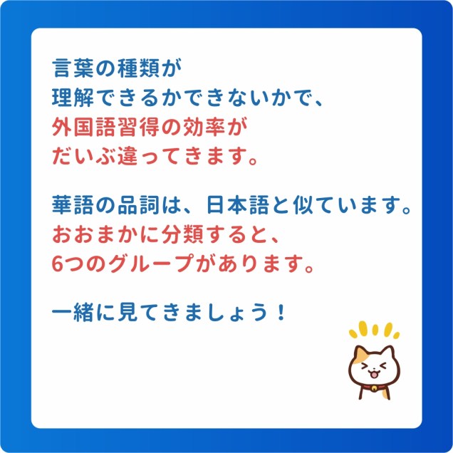 言葉の種類が理解できるかできないかで、外国語習得の効率がだいぶ違ってきます。
